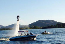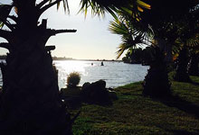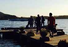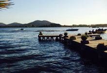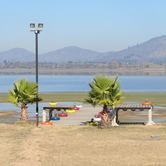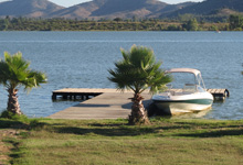 Muelle iluminado, embarcadero de un largo de 16 metros hacia lago desembarcadero y guaderia para vehículos naúticos.